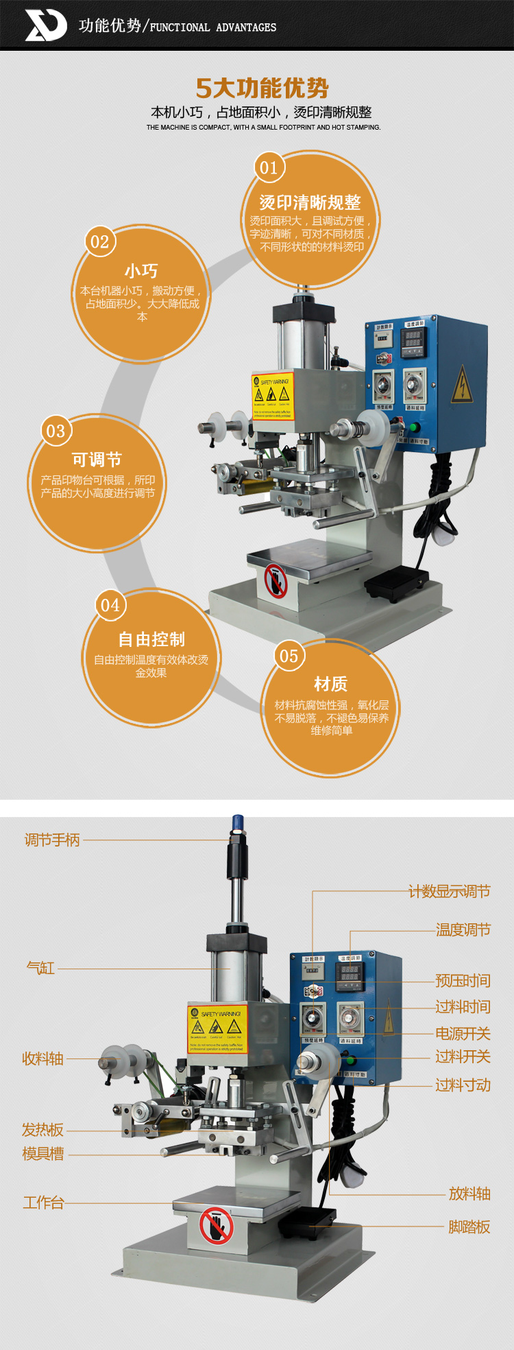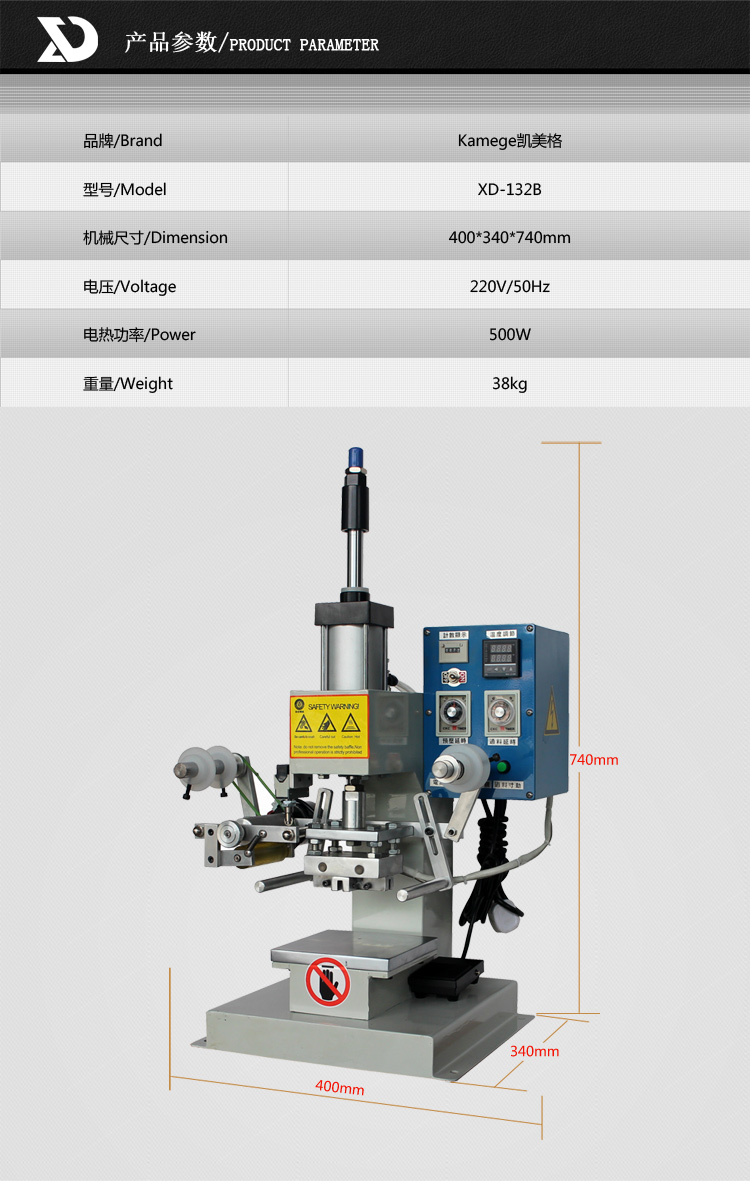 品牌:凱美格 型號(hào):XD-132B 特點(diǎn):小巧,占地面積小,工作效率高,燙印清晰規(guī)整