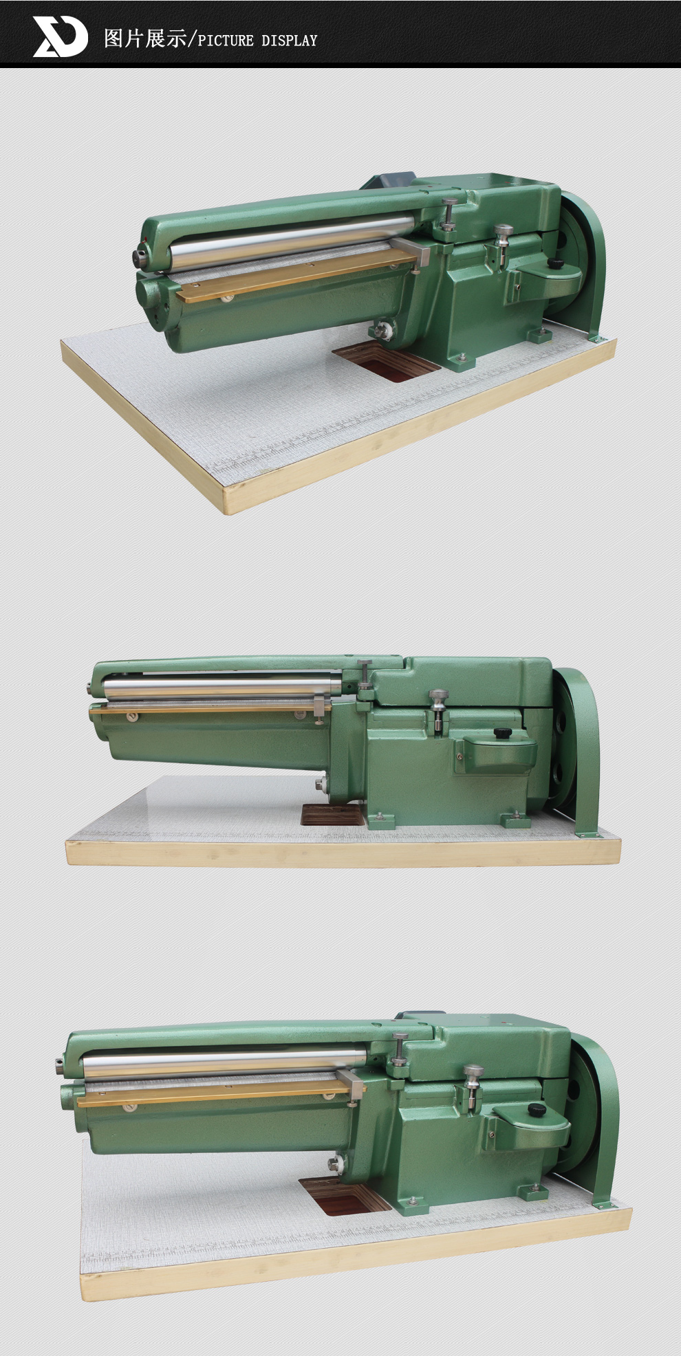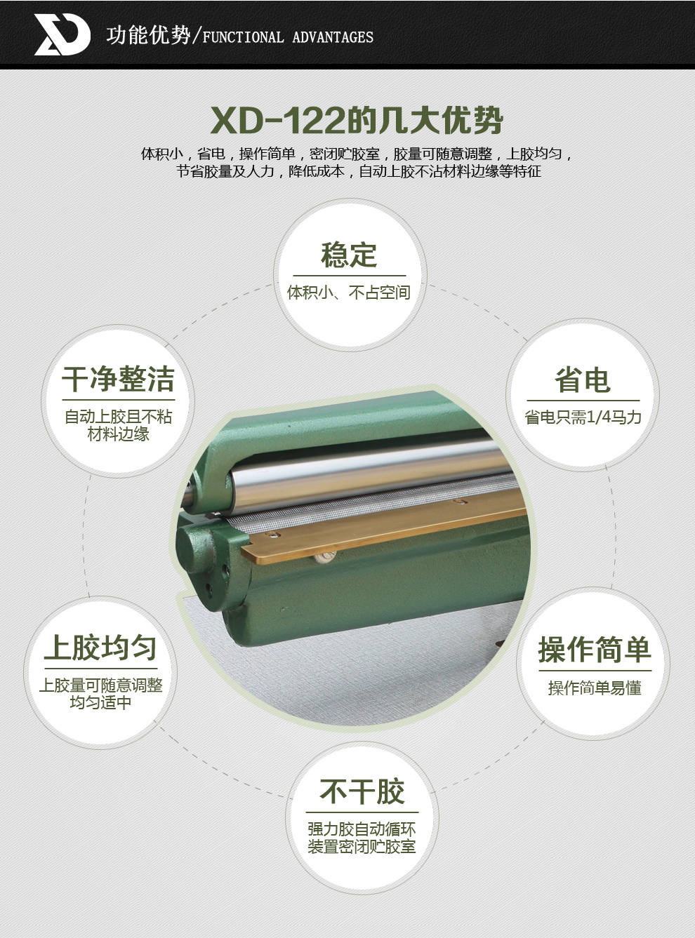 本機(jī)適用于超薄厚度皮件包鞋跟皮中底、鞋墊、紙板、運(yùn)動(dòng)器材或各種軟性材質(zhì)上膠使用。
